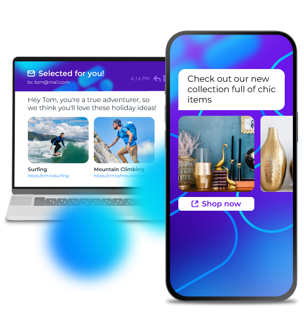 Engage customers via personalised campaigns across all messaging channels, email, SMS, and mobile apps.
